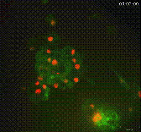 科学家又敲除了肌动蛋白的基因,从理论上来说没了肌动蛋白细胞就动不了了。嗯,脂肪细胞确实也老实多了。↓