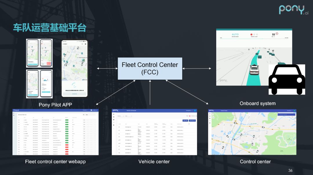 车队运营基础平台,Pony.ai 要打造自己的移动出行服务,需要基础平台来支持 Robotaxi 的运营。