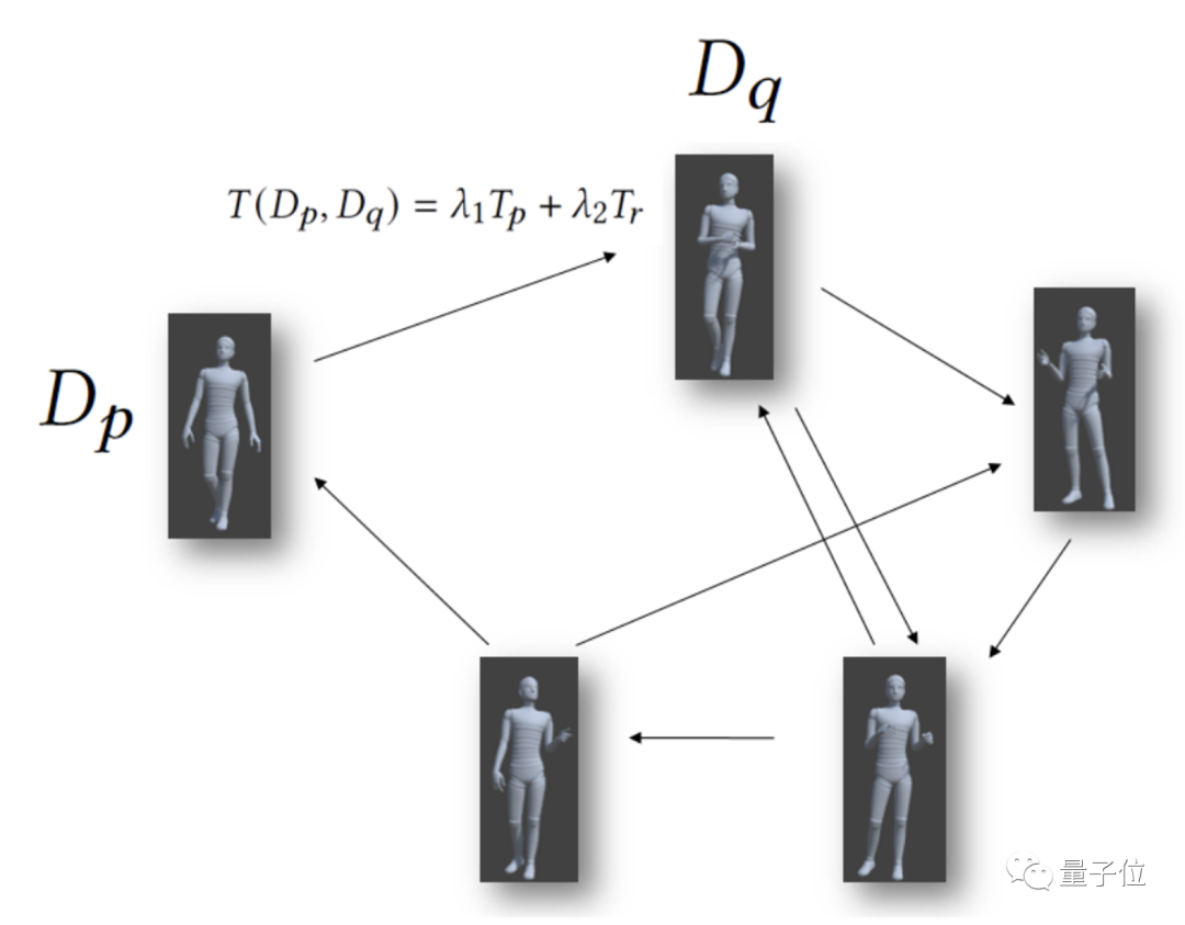 动作图是一个有向图,图中的每个节点表示一个动作片段,两个节点之间的连边则表示这两个动作之间过渡的代价。
