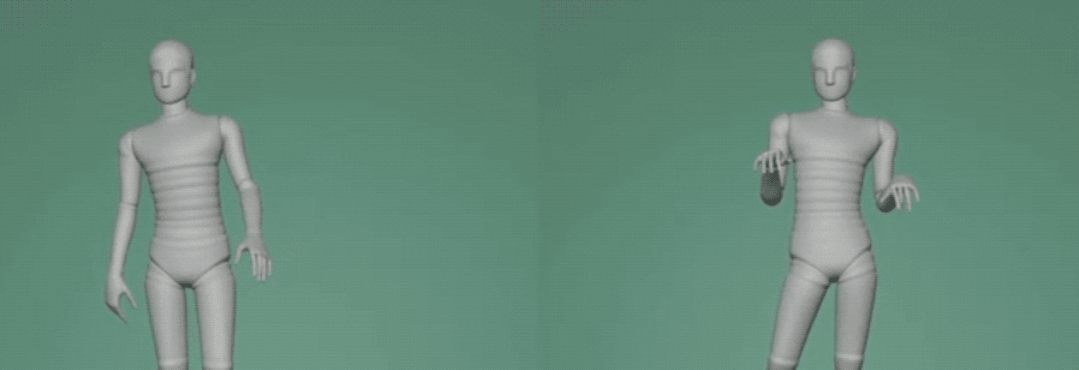 最后,采用混合的方式融合上下半身动作,就得到了和语音文本匹配的全身动作序列。