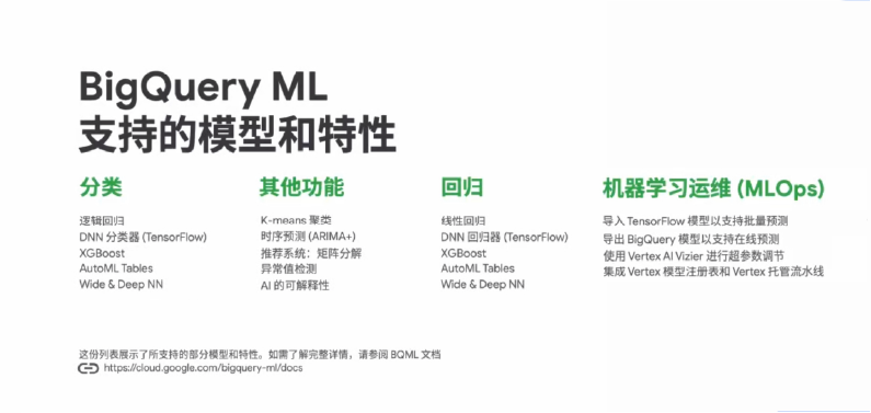 BQML 支持以下模型和特性,并可以在多种场景中使用