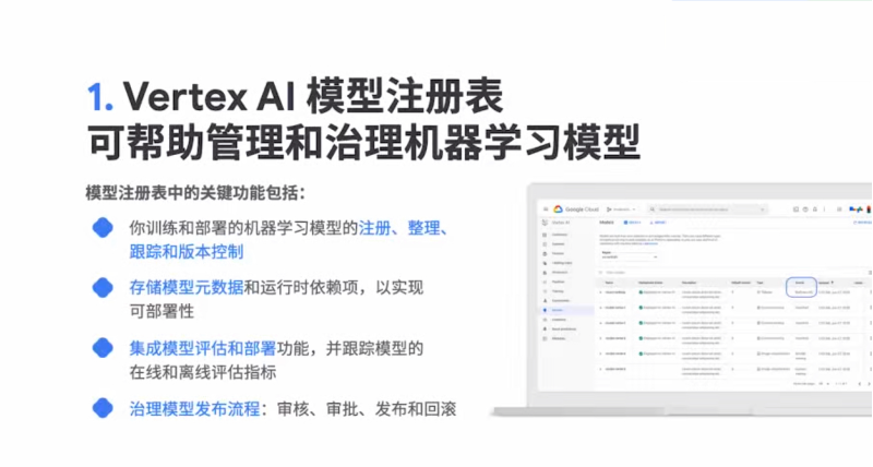 使用 Vertex AI 的工作流 Vertex AI 模型注册表能够帮助可帮助管理和治理机器学习模型。