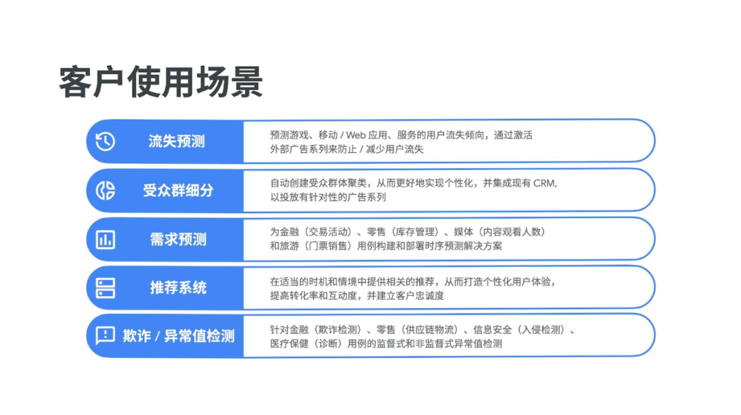 智能化:将 Google AI/ 机器学习技术的精华汇集到数据库中,并预先集成 Vertex AI,可便于在数据库内执行推断,实现高吞吐量、低延迟的增强型事务处理。
