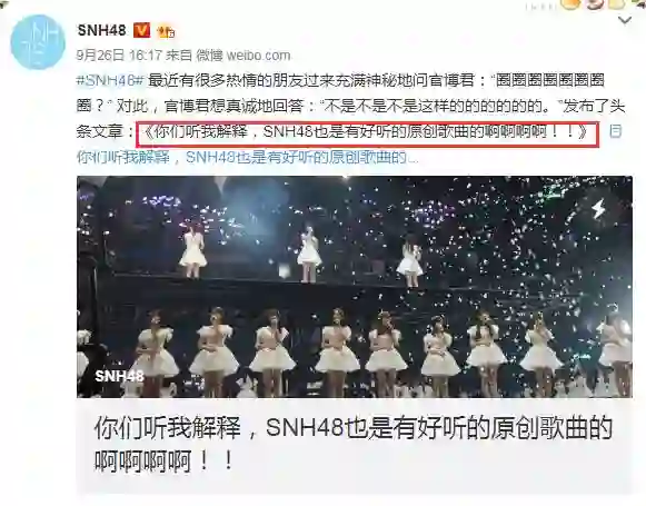 连SNH48也发文称“我们也是有好听的原创歌曲的啊啊啊啊!!”,并表示这歌不是团队原创。