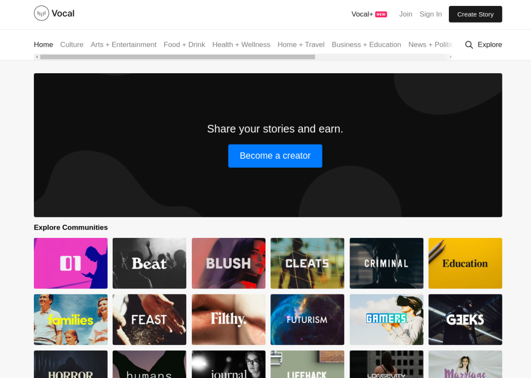 在 Vocal 发布内容,作者可以获得报酬。页面的每一次点击都会给作者一点酬劳,并且,作者还能接受其他用户的捐款。一些专业人士用这个平台展示自己的作品,但对大多数用户来说,这只是一个有趣的爱好,正好顺便赚些零花钱。