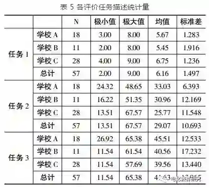 小学数学教师学科知识测评结果见表5。可以看出,教师对学科知识的把握情况远没有想象的那么乐观,他们在任务1(填充概念图)中的平均得分只有6.16分(满分10分),在任务2和任务3中的平均得分也只有29.06分和39.56分(满分100分)。