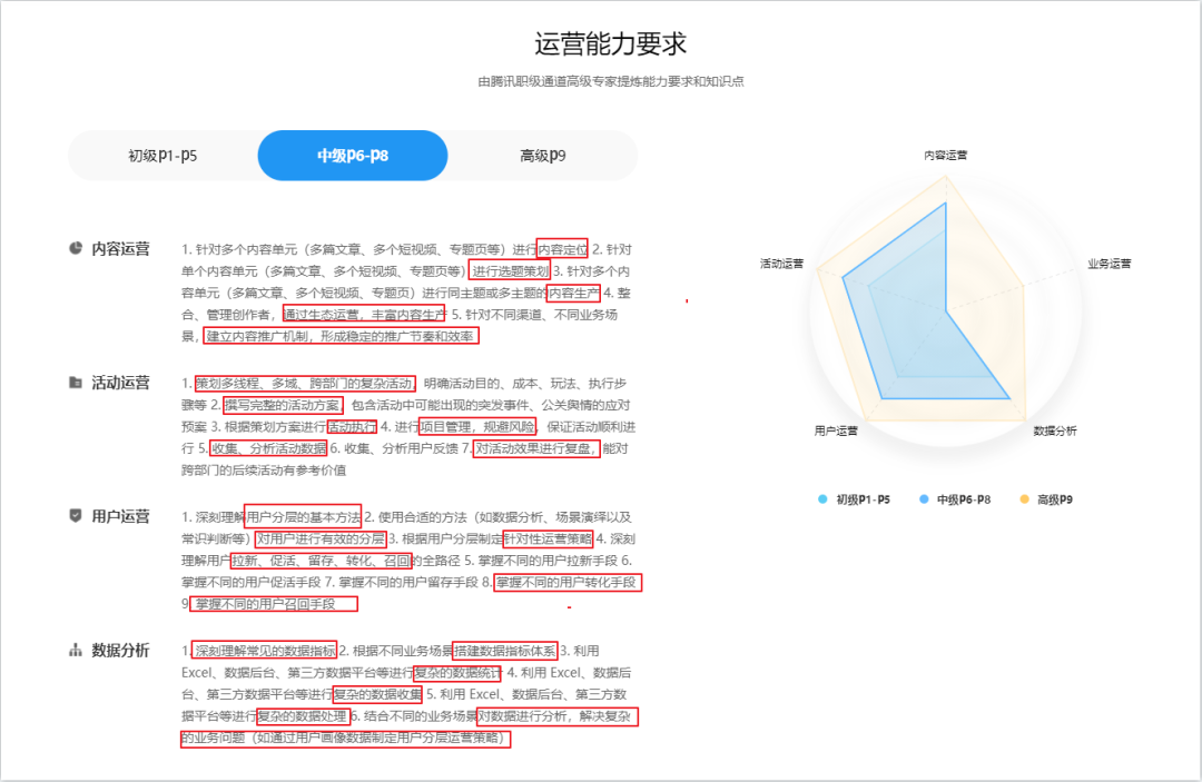 其实,我们参照大厂运营人能力标准,下图是腾讯P6-P8级运营人能力标准: