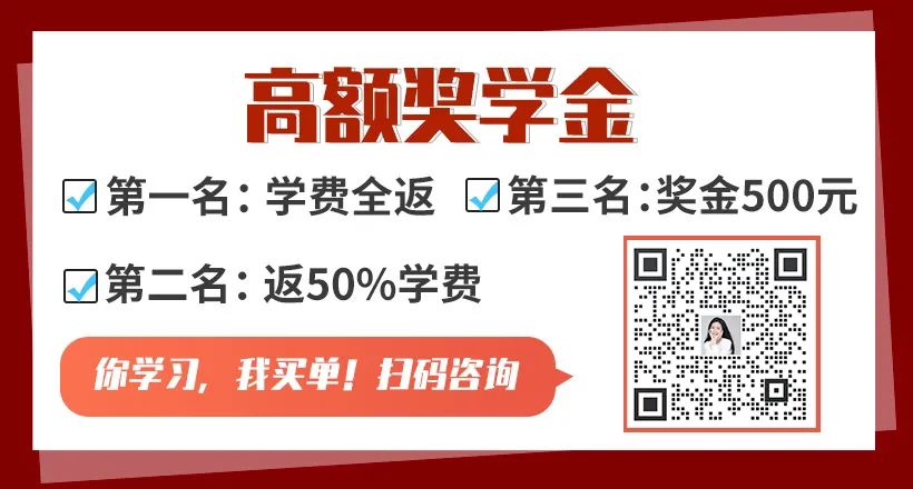 课程结束后我们老师会对大家进行综合考核,根据分数分发高额奖学金,只要你有信心,你就可以来白嫖课程!