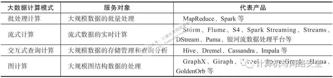 针对不同类型的数据,大数据计算模式也不同,一般来说可分为以下四种: