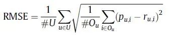 U代表测试集中user集合,I代表测试集中item集合, 代表u对i的评分,●代表空缺的评分( =●代表u没有对i评过分), 代表预测的u对i的评分,