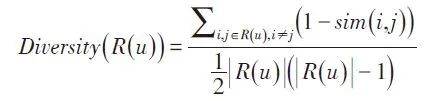 为物品i,j之间的相似性,那么用户u的推荐列表R(u)的多样性可以定义为: