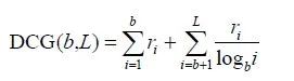 式中, 表示排在第i 位的商品是否是用户喜欢的;ri = 1表示用户喜欢该商品;ri =0 表示用户不喜欢该商品;b是自由参数一般设为2;L为推荐列表长度。