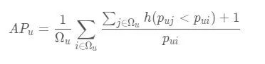 其中,Ωu表示ground-truth的结果, 表示i物品在推荐列表中的位置, $\displaystyle p_{uj}<p_{ui}$ 表示物品j排在i前面。<="" p="">