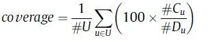 覆盖率最简单的定义是,推荐系统能够推荐出来的物品占总物品的比例。覆盖率越高表明模型能够针对更多的item产生推荐,从而促进长尾效应的挖掘。我们将 定义为u的近邻集合,那么我们可以将覆盖率定义如下: