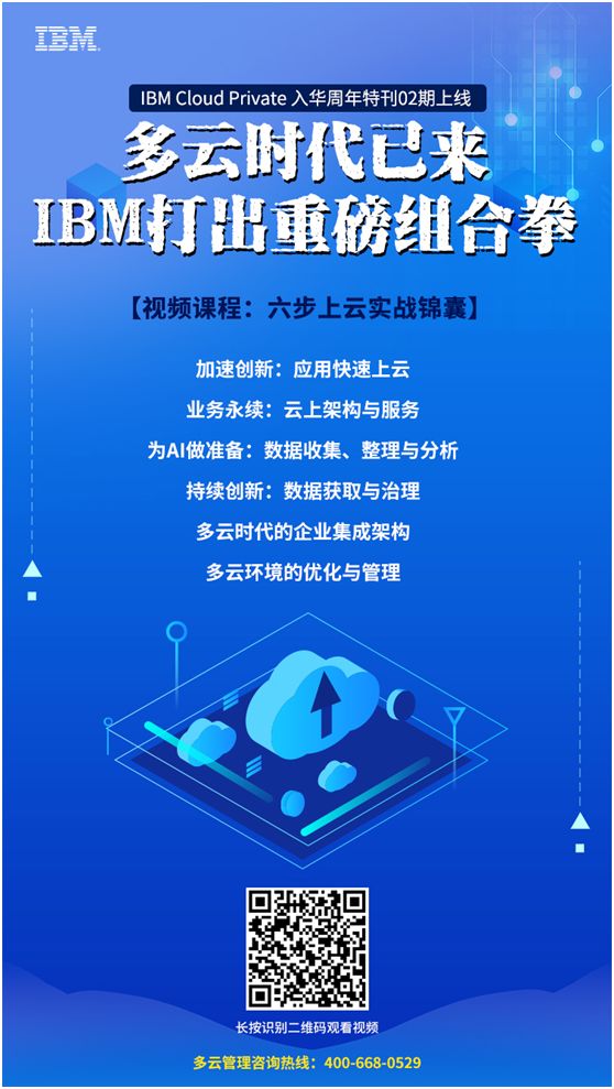 IBM Cloud Private 入华周年特刊第 2 期以“多云”为主题,重磅推出《六步上云实战锦囊》视频课程,让管理人员快速掌握多云管理的精髓。