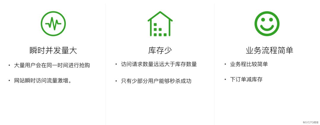 秒杀时会有大量用户在同一时间进行抢购,瞬时并发访问量突增 10 倍,甚至 100 倍以上都有。