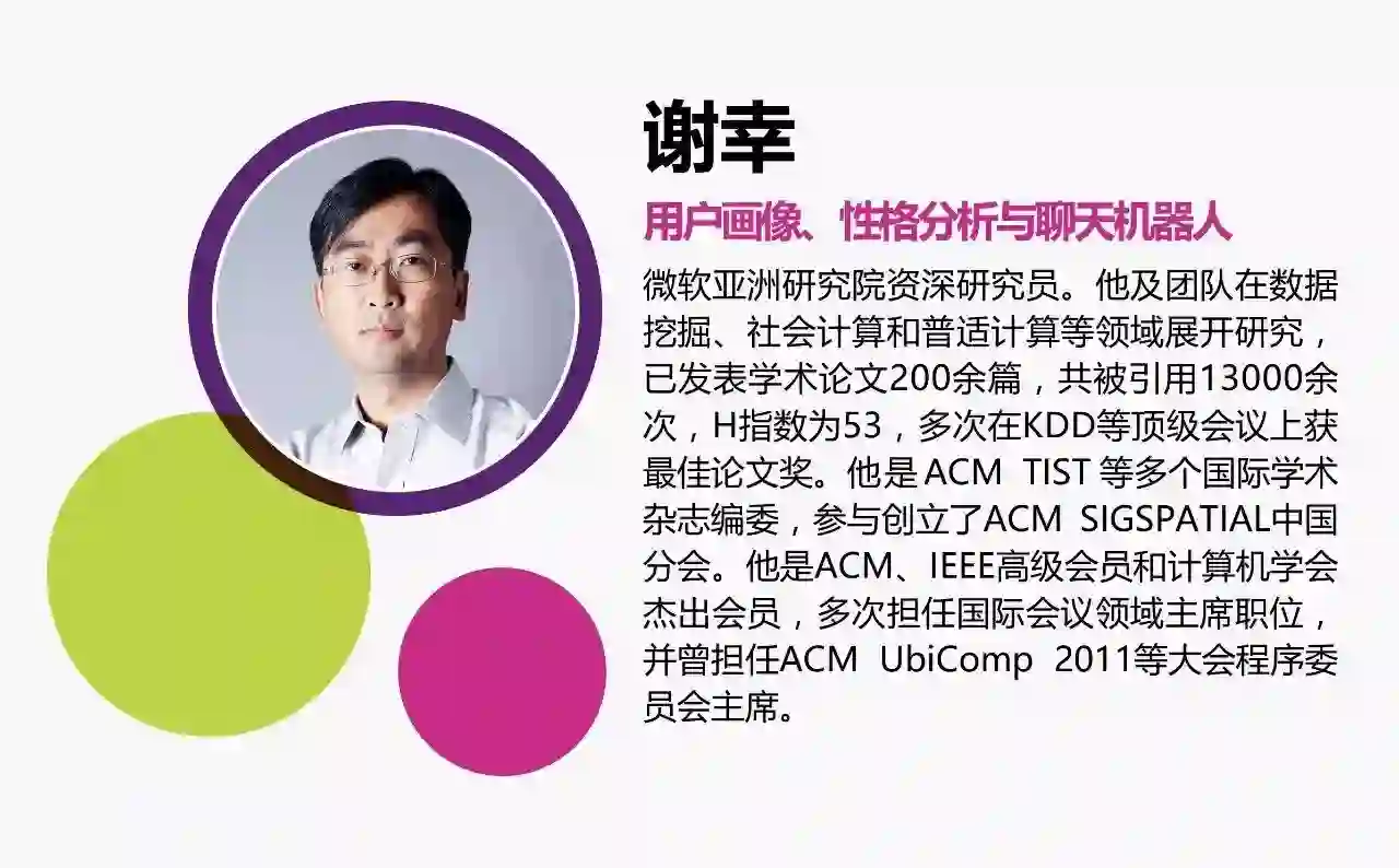 ● 资深研究员谢幸——用户画像、性格分析与聊天机器人