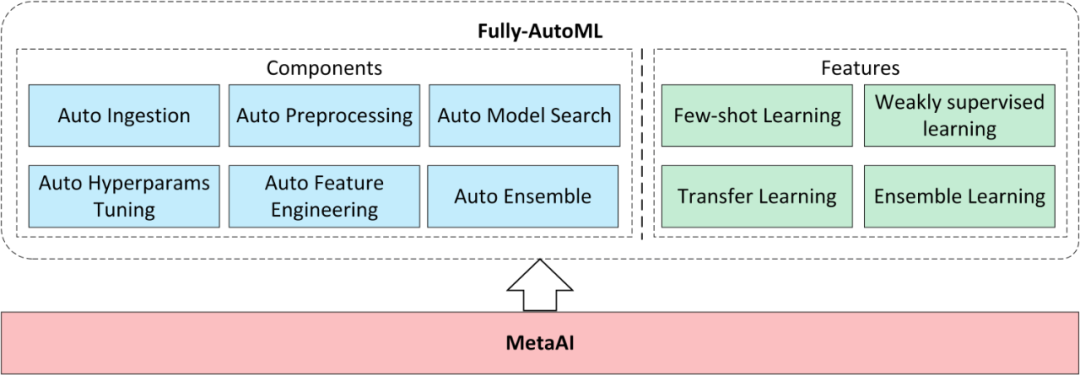 与人类 AI 工程师类似,Full-AutoML 需要接触较多的学习任务,以掌握在不同任务上的共性与特异性技巧。其中 MetaAI 子系统模拟了人类 AI 工程师的学习过程,通过观察已有任务的数据流形与策略效果,以进行全自动的探索性优化。经过观察,MetaAI 可以很好地总结不同任务知识,将原本耗时数年的 AI 构建过程缩短到最短数十秒。
