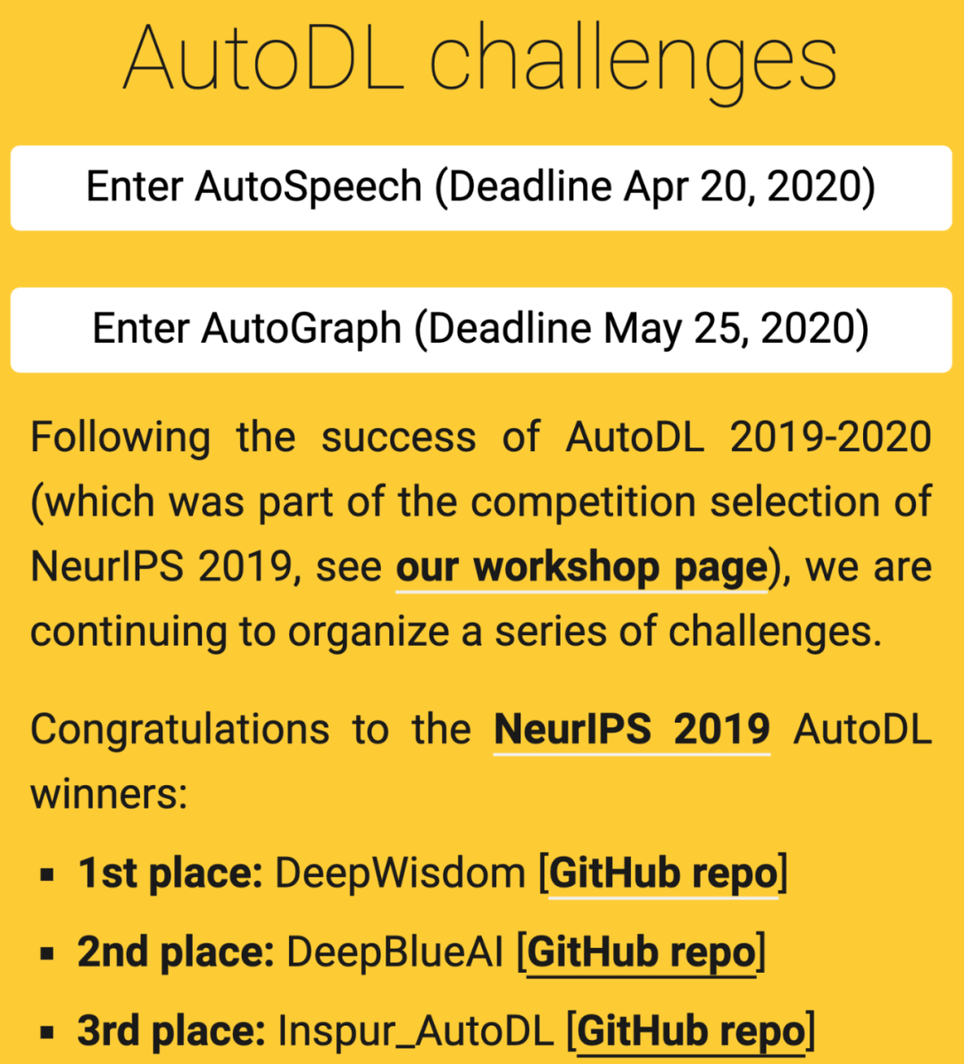 由 NeurIPS 举办历时四个月的 AutoDL 2019-2020(自动深度学习) 系列竞赛总决赛在 4 月 18 日落下帷幕,来自深度赋智的 DeepWisdom 团队荣获冠军。本文介绍了来自冠军团队的解决方案。