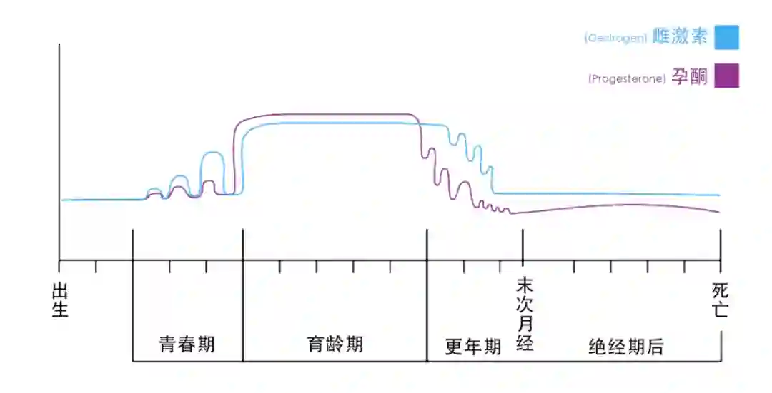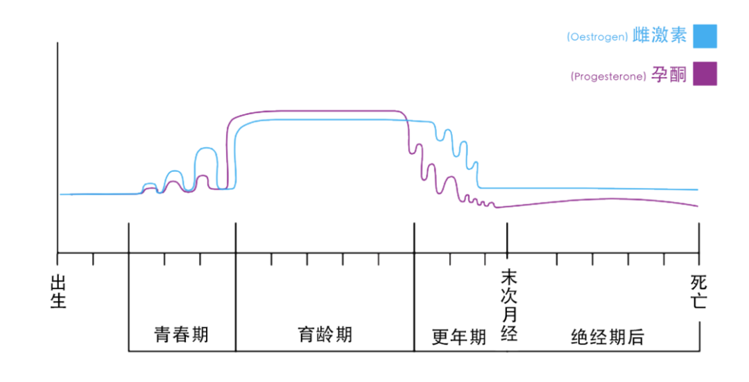 女性一生中激素水平的变化。Harrington J. Female Hormone Lifecycle [Internet]. Menopause Natural Solutions. 2020 [cited 2022 Aug 25]. Available from: https://www.menopausenaturalsolutions.com/blog/female-hormone-lifecycle