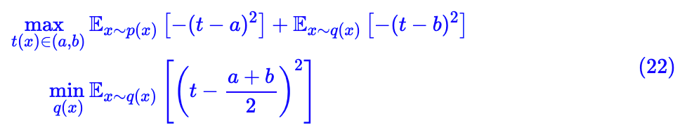 读者可能会困惑 LSGAN 里边没有 t(x)∈(a,b) 这个限制呀,这里怎么会有?