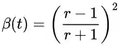 ,它显然是在 r=1 处取到最小值,然后设 α(t)=β(t),试图反推 β(t) 的形式,即 d(r)=(1+r)β(t),推出