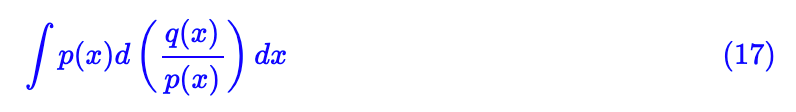 但问题是,并不是所有的 ∫d(p(x),q(x))dx=0⇔p(x)=q(x) 的结论都意味着有 d(p,q)=0⇔p=q,比如 KL 散度为