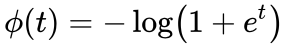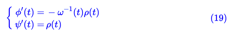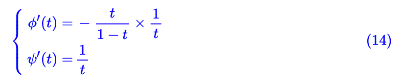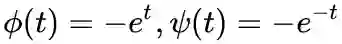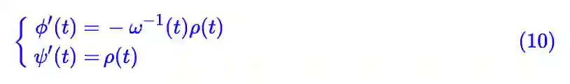从而积分得到 ϕ(t)=log(1−t),ψ(t)。此外注意到 Ω=ω([0,+∞))=[0,1),并且