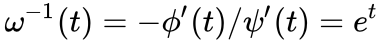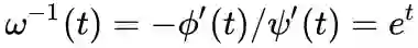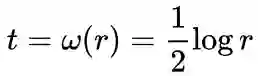 ,即 t=ω(r)=log r,显然它也是严格单调递增的,最后验算 ψ(ω(1)) 发现它确实等于 0。