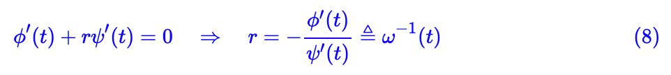 基于这样的假设,要求 ϕ(t)+rψ(t) 的最大值,首先需要求导并让它等于 0: