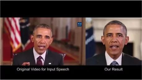 华盛顿大学进行了一项研究,以合成美国前总统奥巴马的嘴唇动作。选择他为对象的原因在于,在网络上有大量他的视频(17小时的高清视频)。
