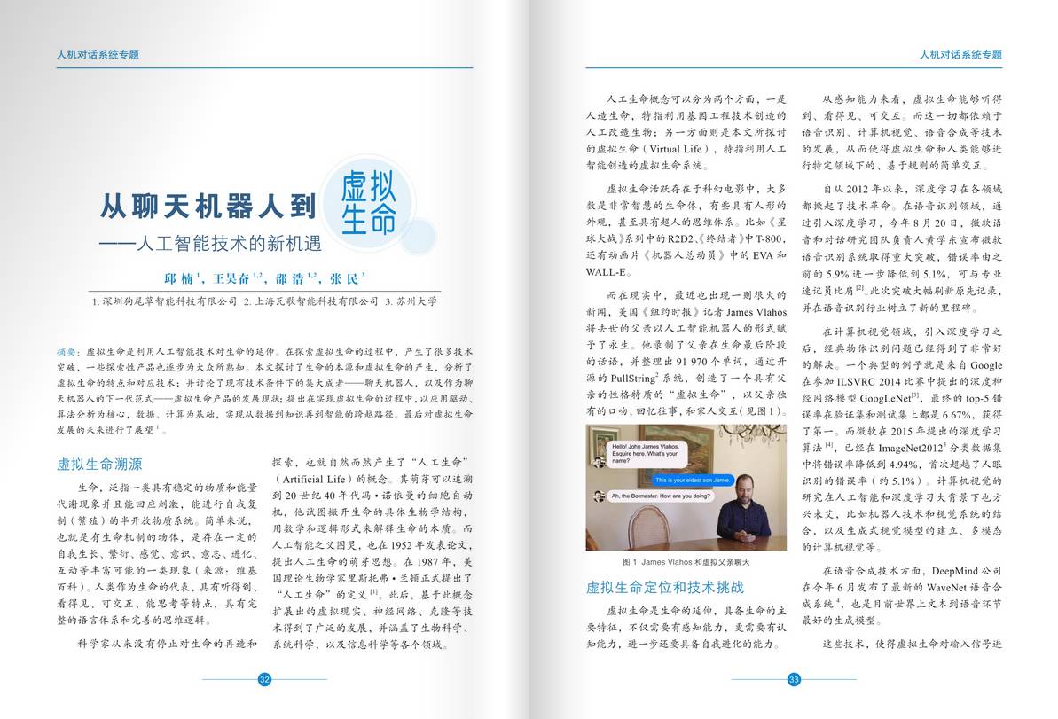 而在国内人工智能领域顶级期刊最新的《中国人工智能通讯》第11期上,也同样刊登了Gowild技术团队发表的论文——《从聊天机器人到虚拟生命——人工智能技术的新机遇》。而本期一共四篇论文,除了Gowild的一篇之外,其余三篇来自阿里、百度、微软。