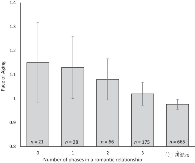 从未参与过亲密关系或只在四个研究阶段之一处于亲密关系的55名参与者(5.6%),衰老速度明显更快。