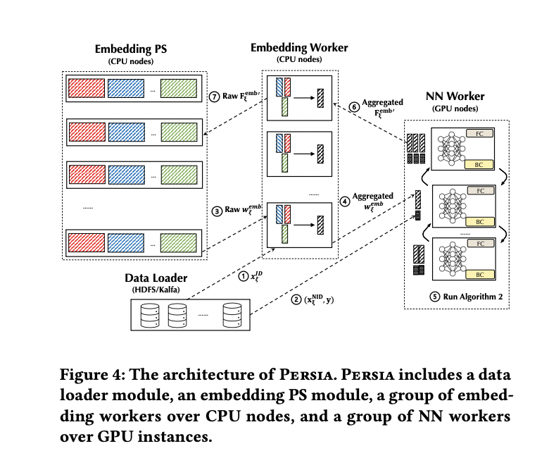 相关的混合基础设施训练进程PERSIA 有四个模块,为推荐系统提供高效的自动缩放能力: