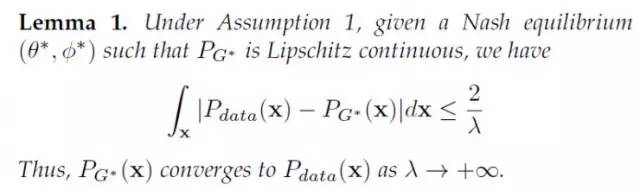 然后,有了这个假设,就能证明LS-GAN,当把L-函数限定在Lipschitz连续的函数类上,它得到的生成样本的分布和真实样本是完全一致!