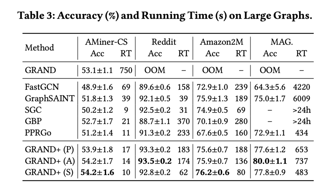 近期的工作认为图随机神经网络具有很好的性能,但是难以用在大型图上。本文提出了一个广义的前推算法,预先计算传播矩阵,并使用它以小批量方式执行图数据扩充,最后使用一个自信感知的一致性损失来优化模型。