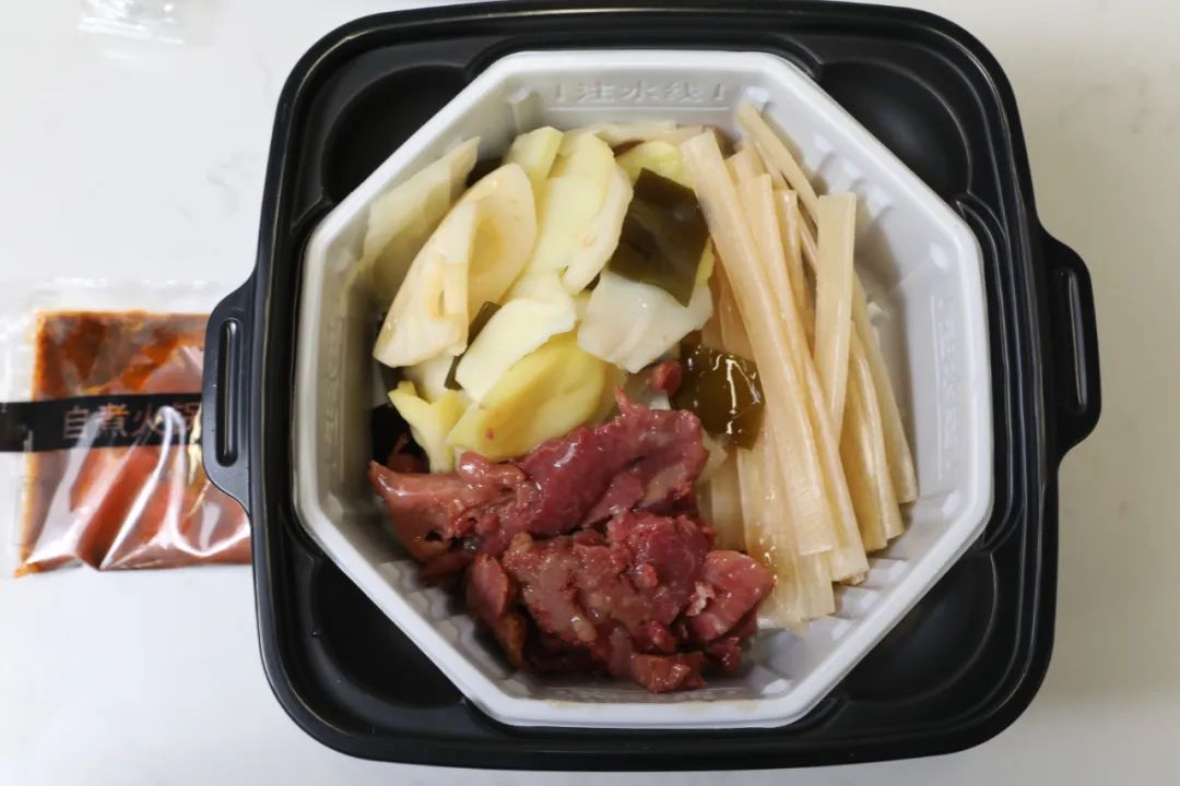我们发现大部分的自热锅选择的牛肉都是牛肉片和小块牛肉碎肉还是北方酱牛肉风味的,在自热锅里一煮融入其中在粉丝里找牛肉吃起来不够爽快。希望各大厂商能改进一下。