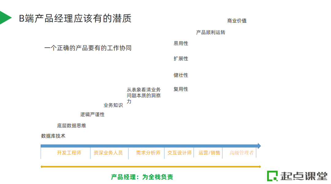 第二部分内容,老师将从B端产品技能栈、B端产品经理角色上下游等方面为大家分析B端产品经理应该具备哪些潜质。