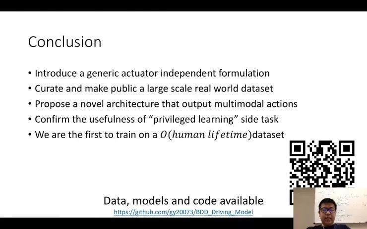 在 2017 年 10 月最新的文章中,已经可以通过高阶的运动意图对低阶的实际驾驶操作进行条件(conditioned)控制,在许华哲看来已经是水平最领先的文章。