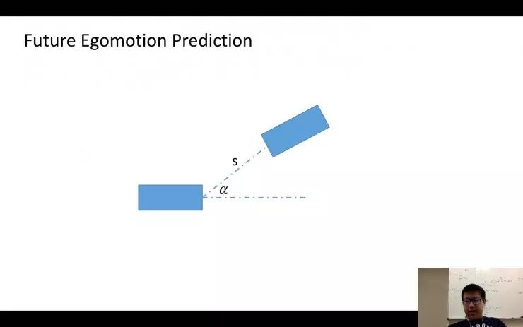 模型中要预测的 egomotion 用方向角α和位移 s 描述,这样也就不需要直接对车辆内的方向盘和踏板进行控制,简化了系统的前期研究。