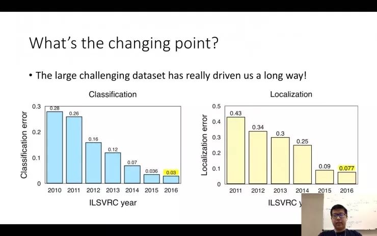 从近年的错误率显著下降来看,大家都认为图像分类问题是一个近乎于解决了的问题,ImageNet 就在其中起到了非常大的贡献。