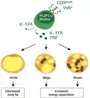 来自于都柏林圣三一学院的免疫学副教授Lydia Lynch和团队在脂肪组织中找到一类特殊的免疫细胞——Gamma delta T细胞(gd T细胞)可以通过调控脂肪代谢,控制身体热量、抵御寒冷。