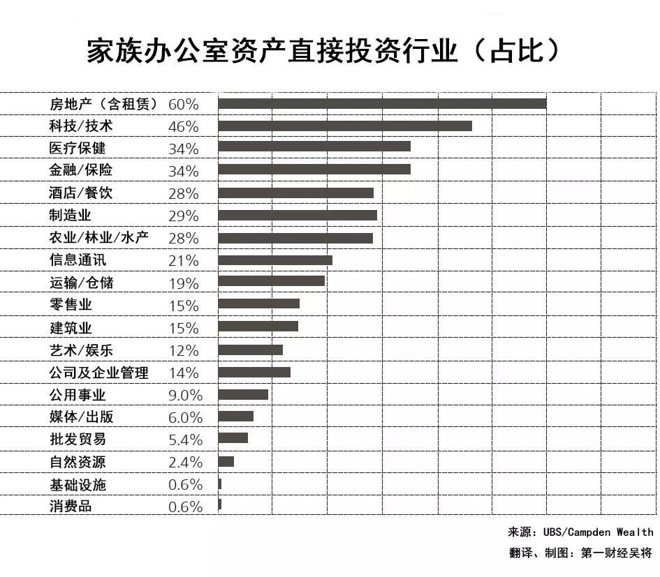 报告显示,家族办公室每年参与直接投资的次数不多,但投向的行业却十分有针对性,主要集中于房地产(60%)、科技类(46%)、医疗保健(34%)和金融(34%)。