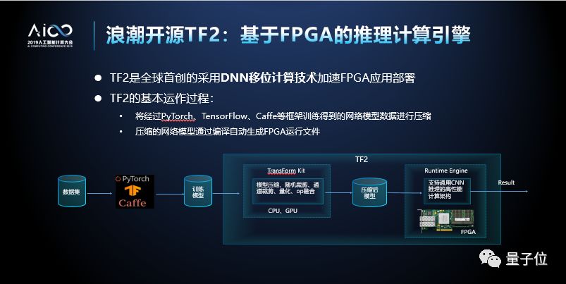 此外,浪潮还开源了智能化引擎TF2。TF2基于FPGA,在全球范围内首先采用DNN位移计算技术加速FPGA应用部署。