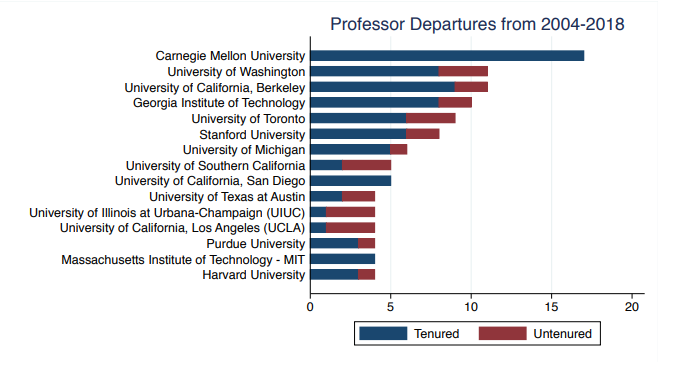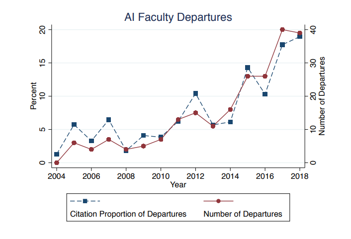 研究人员发现,AI 教授的流失会对他们所在大学的毕业生在 AI 领域创业造成负面影响。