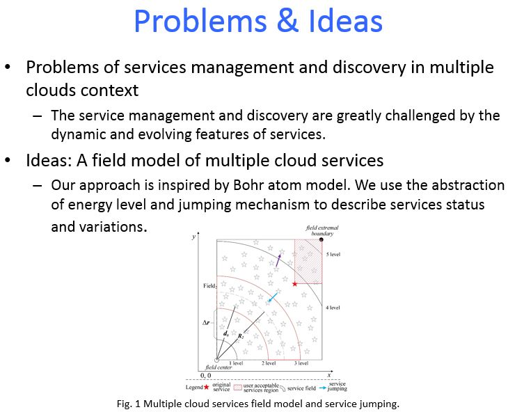 在多样化和自治的多云环境中,由于服务的动态和可演化特性,服务的管理和发现面临极大的挑战。如何管理云服务的功能并支持准确有效的服务发现已成为云计算领域的一个开放性问题。本文提出了一种多云服务的场模型和相应的服务发现方法来解决该问题。与现有研究不同的是,本文的方法是受到玻尔原子模型的启发。本文使用能级和跃迁机制的抽象来描述服务的状态和变化,从而支持服务划分和发现。