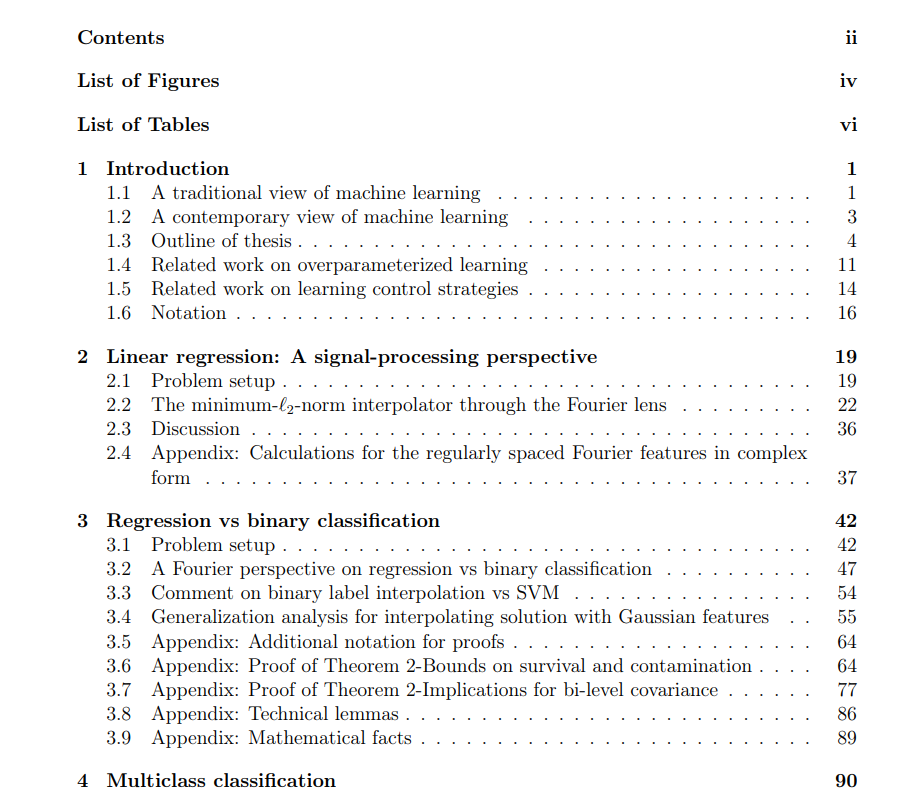 接下来,我们分析最小-ℓ2-范数插值器在高斯特征设定下的回归和二元分类问题的泛化误差。对于回归,我们插值实值标签,对于二元分类,我们插值二元标签。(事实证明,在充分的过参数化条件下,二值标签的最小范数插值与其他二值分类训练方法等价,如支持向量机或逻辑损失梯度下降法。)我们研究了一个渐近设置,其中特征的数量d与训练点的数量n成比例,且都是n, d→∞。在特征的双水平尖峰协方差模型下,证明了存在一种中间状态,在这种状态下,我们在分类任务上表现良好,但在相应的回归任务上表现不佳。然后,我们将分析扩展到多类分类设置,其中类的数量也与训练点的数量成比例,通过导出由一热编码标签的最小范数插值器引起的分类误差的渐近界。最后,为了理解我们如何学习在实践中很好地推广的模型,我们经验地研究了神经网络的应用,在硬控制问题中,最优解是未知的,线性解被证明是次优的非线性控制策略。通过智能设计神经网络架构和训练方法,利用我们对控制系统动力学的知识,我们能够更容易和鲁棒地学习性能良好的控制策略。