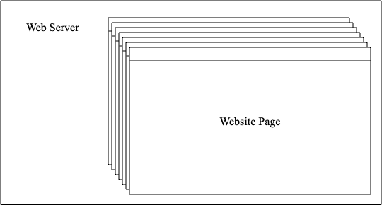 传统意义上的网站架构,通过超文本传输协议,浏览器可以快捷方便地将我们想要访问的页面呈现在眼前。每个网站由多个页面组成,这些页面也都属于 Web Server 的一部分,如图 1 所示。