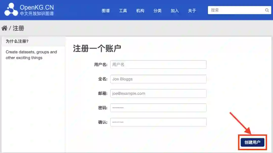 1)用户注册上链:当使用者在OpenKG.CN注册网站用户时,系统同步完成用户信息在区块链服务器中的注册,生成一个链上账户作为其他操作的主体,如图13所示。