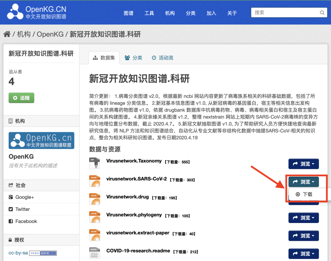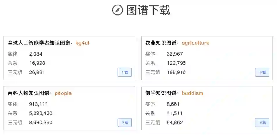 OpenKG旨在构建以中文为基础的开放域知识图谱共享平台,同时促进知识图谱算法模型和工具的开源开放以及知识图谱技术的普及应用。OpenKG旗下包括多个子项目和资源网站,如: